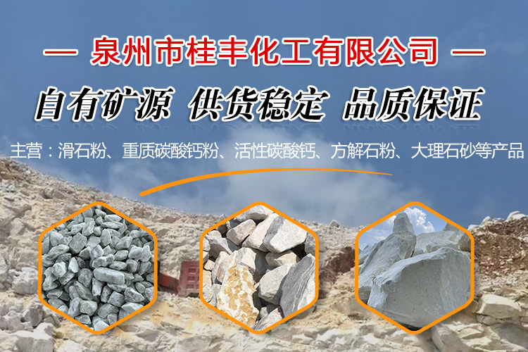 泉州市桂豐化工有限公司是一家有十幾年粉體技術研究和生產經驗的企業,公司集粉體技術開發、礦山開采、粉體生產為一體。主營:滑石粉、重質碳酸鈣粉、活性碳酸鈣、方解石粉、大理石砂等產品。專業生產十大系列10目-8000目石粉產品。得益于優良的礦山礦石資源,我司生產的產品具有白度高,純度高,粉碎充分,粒度分布均勻,化學成份穩定等特點。產品廣泛運用于醫藥、化妝品、食品、鞋材、家裝、造紙、橡膠、塑料、涂料、油漆、油墨、陶瓷、電線、電纜等眾多行業。 經過十多年快速的發展,我司擁有了三個礦石粉生產基地,三十多臺套的生產設備,員工規模達到一百五十多人。多年來,公司堅持以市場為導向,不斷加大科技投入,與國內大學院校,專業粉體研究機構保持常年合作,實行產學研銷一體發展。針對不同行業不同產品客戶的差異化需求,制定一對一的技術支持與生產跟進服務,把“提高客戶產品品質,降低生產成本,實現客戶效益提升”作為公司的服務宗旨。目前,公司產品在國內大部分省份均有銷售,并出口到了國外市場。